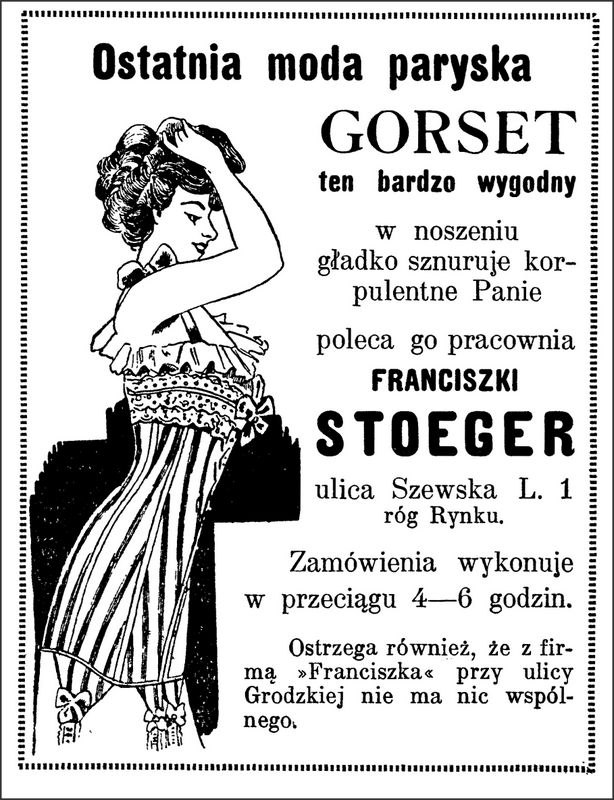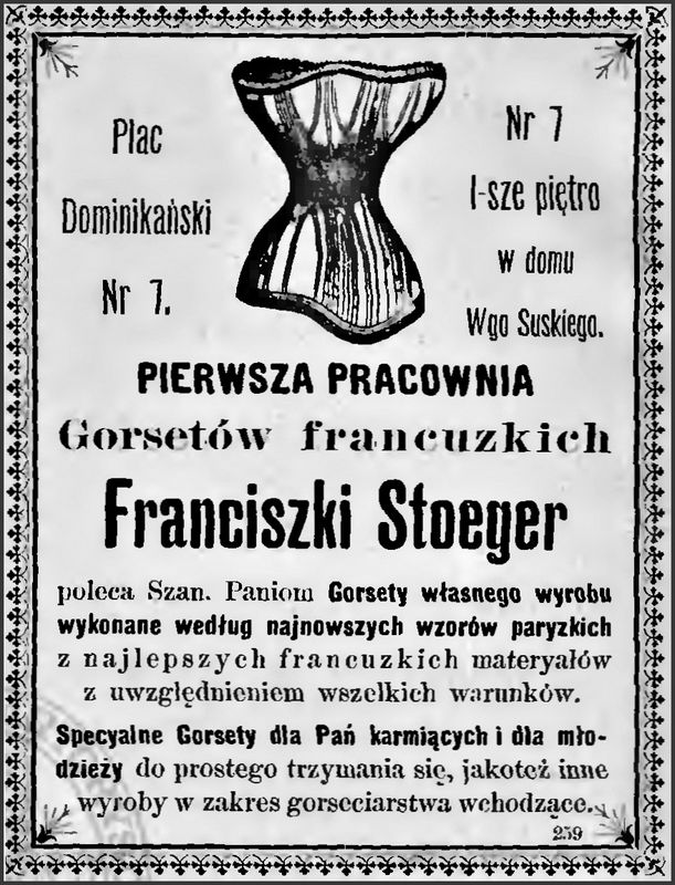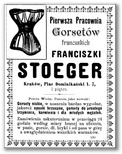 Dla dam specjalne akcesoria kobiece typu gorsety, pończochy, wachlarze, a dla mężczyzn krawaty, cylindry i kuferki.
