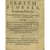Sertum Florale, Ex quinque Flosculis: Venarabili Domino Alberto Łańcucki Scavinio, in Ordine XII. Dum in Almo Lycaeo Cracouiensi Artium et Philos Licentiatus, a Clarissimo & admod. Rndo D. Martino Campo Vadovio S. Theol. Doct. et Profess: S. Flor: Praep: Almae Univ: Procanc: digniss publice renuntiaretur. A Christophoro Miskowski Novicampiano, eiusdem 2dae Laur: Candidato, tanquam fratri amantissimo, amoris et honoris ergo, contextum et oblatum. - Miskowski, Christophorus NovicampianusSertum Florale, Ex quinque Flosculis: Venarabili Domino Alberto Łańcucki Scavinio, in Ordine XII. Dum in Almo Lycaeo Cracouiensi Artium et Philos Licentiatus, a Clarissimo & admod. Rndo D. Martino Campo Vadovio S. Theol. Doct. et Profess: S. Flor: Praep: Almae Univ: Procanc: digniss publice renuntiaretur. A Christophoro Miskowski Novicampiano, eiusdem 2dae Laur: Candidato, tanquam fratri amantissimo, amoris et honoris ergo, contextum et oblatum. - Miskowski, Christophorus Novicampianus
