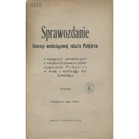 Sprawozdanie Komisji wodociągowej miasta Podgórza o wstępnych pertraktacyach z miastem Krakowem celem zaopatrzenia Podgórza w wodę z wodociągu krakowskiegoSprawozdanie Komisji wodociągowej miasta Podgórza o wstępnych pertraktacyach z miastem Krakowem celem zaopatrzenia Podgórza w wodę z wodociągu krakowskiego