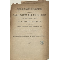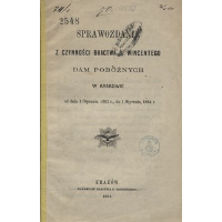 - Sprawozdanie z czynności Towarzystwa Pań Miłosierdzia św. Wincentego á Paulo dla ubogich w Krakowie : od dnia 1. Marca 1867 r. do 1. Stycznia 1868 r.
