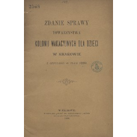 Zdanie Sprawy Towarzystwa kolonij wakacyjnych dla dzieci w Krakowie z czynności w roku 1889Zdanie Sprawy Towarzystwa kolonij wakacyjnych dla dzieci w Krakowie z czynności w roku 1889