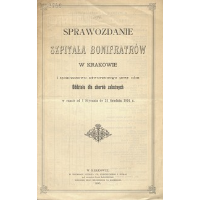 - Sprawozdanie Szpitala Bonifratrów w Krakowie za rok 1903 o leczonych tamże chorych, których bez względu na religię, narodowość i stan przyjęto, pielęgnowano i leczono […]