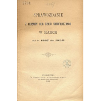 - Sprawozdanie z Lecznicy dla dzieci skrofulicznych w Rabce założonej i utrzymywanej przez Towarzystwo Opieki Szpitalnej dla dzieci w Krakowie z roku 1898