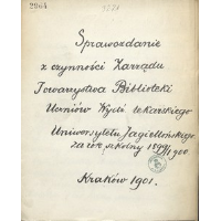 Sprawozdanie z Czynności Zarządu Towarzystwa Biblioteki Uczniów Wydź. Lekarskiego Uniwersytetu Jagiellońskiego za rok szkolny 1899/1900