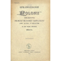 Sprawozdanie "Polonii" Towarzystwa Polskiej Młodzieży Katolickiej Uniw. Jagiell. w Krakowie za rok trzeci istnienia 1910/11