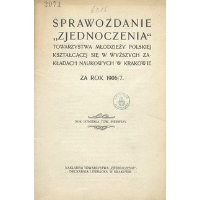 Sprawozdanie "Zjednoczenia" Towarzystwa Młodzieży Polskiej Kształcącej się w Wyższych Zakładach Naukowych w Krakowie za rok 1906/7