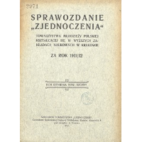 Sprawozdanie "Zjednoczenia" Towarzystwa Młodzieży Polskiej Kształcącej się w Wyższych Zakładach Naukowych w Krakowie za rok 1911/12