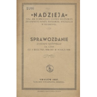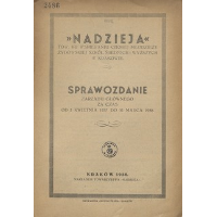 - "Nadzieja" Towarzystwo ku wspieraniu ubogiej, chorej, uczącej się młodzieży żydowskiej galicyjskich szkół średnich i wyższych : sprawozdanie