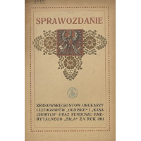 1901-2000 , 1901-1914 , Stowarzyszenie Drukarzy i Litografów (Kraków) , Stowarzyszenie Emerytalne Drukarzy "Siła" (Kraków) , Fundusz Emerytalny "Siła" (Kraków) , Organizacje , Drukarze , Litografowie , Dokumenty życia społecznego , Sprawozdawczość , Kraków (woj. małopolskie). , Sprawozdanie